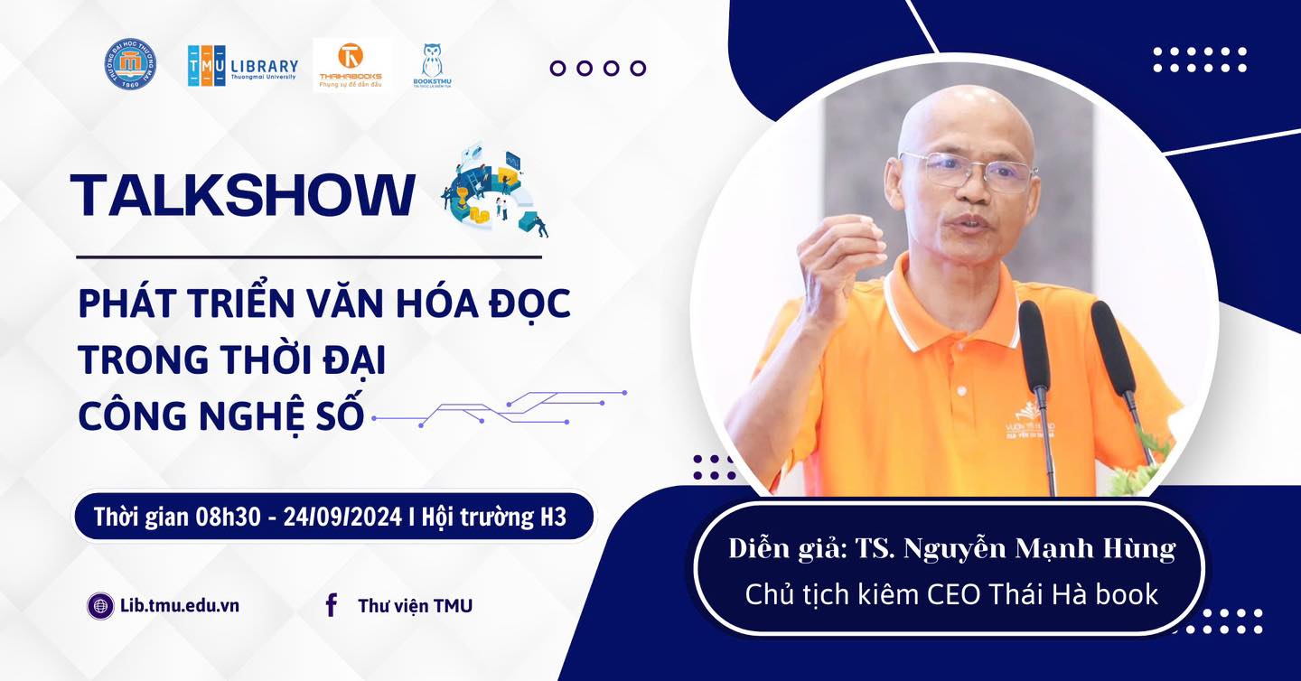 🔹Trong thời đại công nghệ thông tin và sự bùng nổ của hệ thống truyền thông nghe – nhìn, đọc sách đã có nhiều thay đổi so với trước đây và tại Talkshow TS Nguyễn Mạnh Hùng hứa hẹn sẽ đem lại cho bạn đọc góc nhìn thực tế từ những trải nghiệm, kinh nghiệm của bản thân cùng những chia sẻ bổ ích về việc đọc sách trong thời đại công nghệ số.
